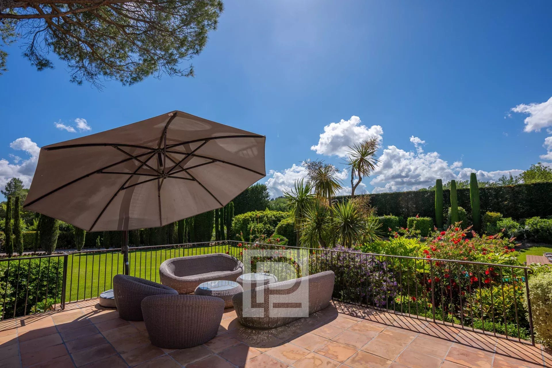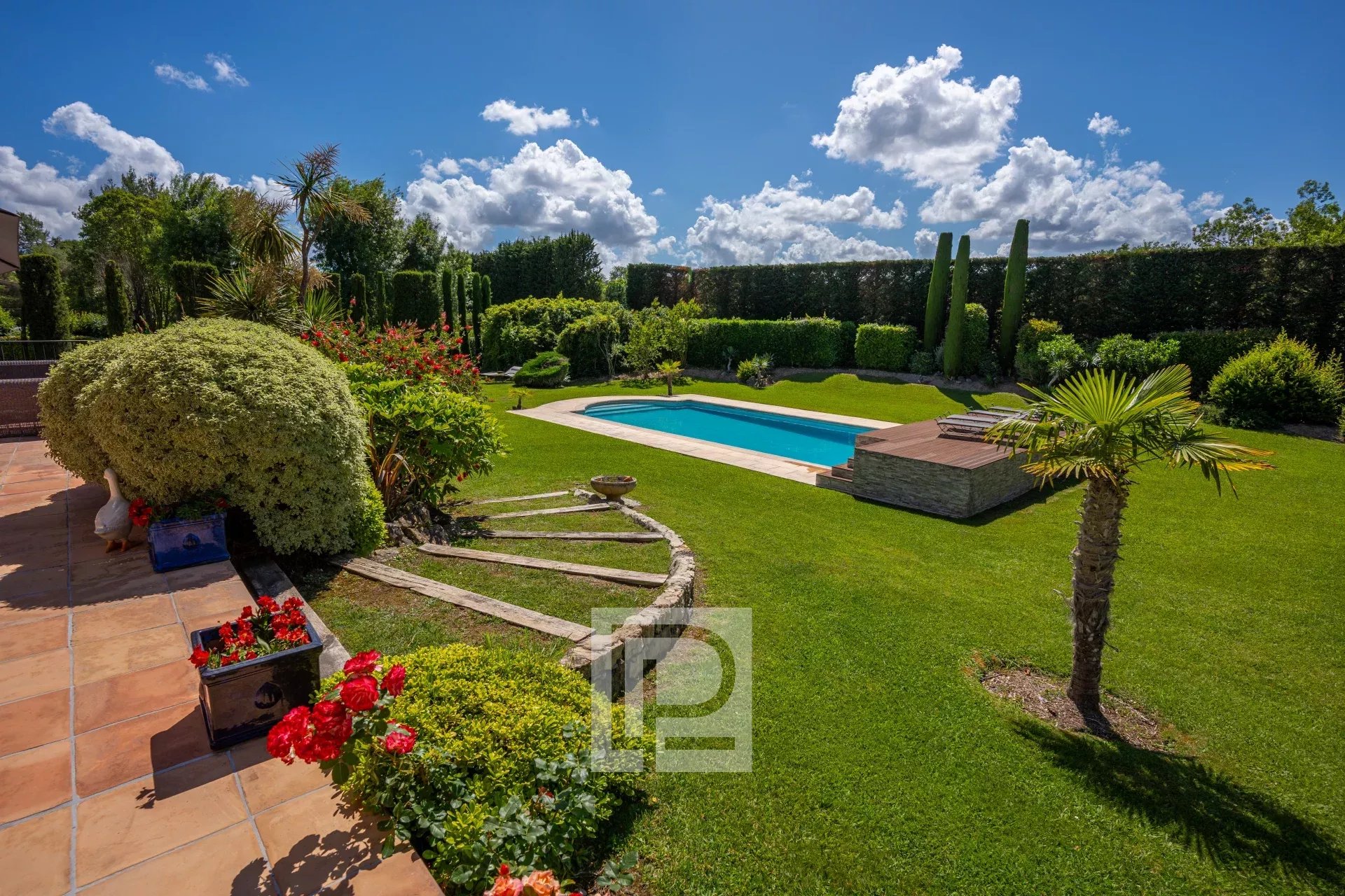 Nestled on a flat, landscaped 5,000 m² plot, it offers spacious accommodation and maximum sunlight.